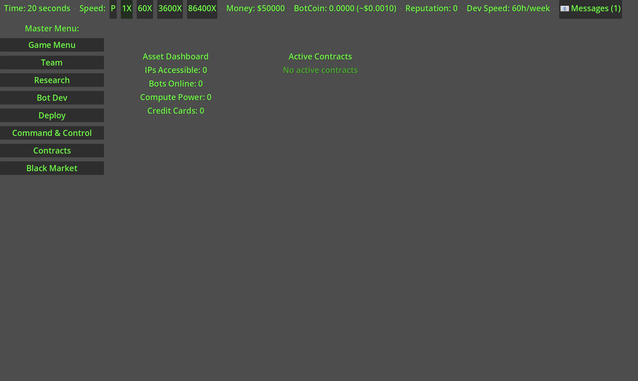 - Dynamic Economy - Manage development hours between research and bot creation. Convert unused hours to income or invest heavily in long-term growth
